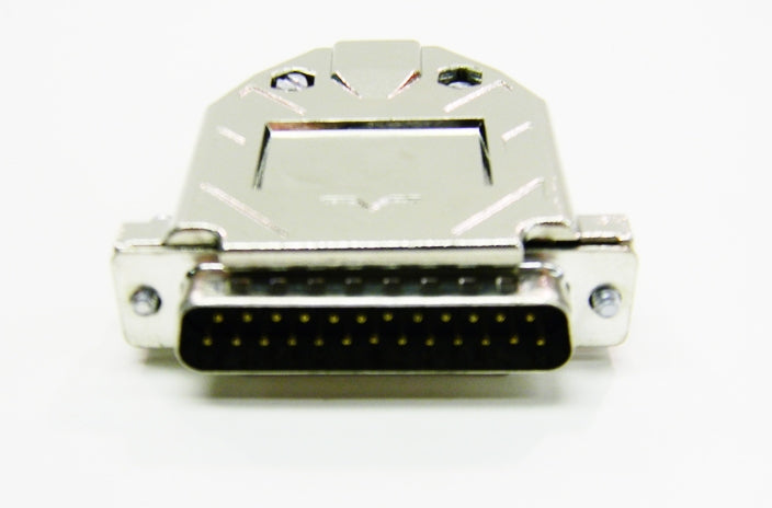 Northern Technologies C88E320000 DB25 metalized plastic straight exit cover. The C88E320000 comes with male retaining screw set, strain relief screws, and compression insert.