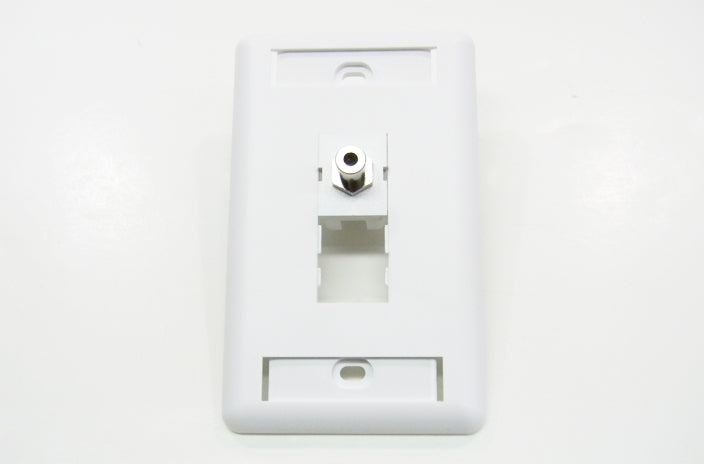 - Front load footprint allows a choice of up to six jacks/connectors to fit in a single gang plate