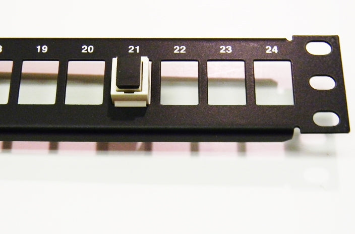 Ortronics OR-SPKSU24 unloaded 24-port TechChoice patch panel is a 1U black multimedia patch panel that accepts keystone style, data, voice, AV and other media modules. Ortronics OR-SPKSU24 TechChoice patch panels combine the reliability and ease of installation  with performance and rugged construc­tion to provide a cost-effective option for communications technicians. All terminations done from rear of panel.