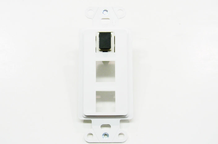 Ortronics WP3413-WH On-Q 3 port keystone white single gang decorator frame supports keystone inserts, with most insert combinations compatible.The Ortronics non-flexing design of the WP3413-WH On-Q decorator outlet provides security when plugging and unplugging cables. Steel threaded inserts with recessed hex design to reduce spin for faceplate mounting and easy leveling to compensate for off-center boxes.