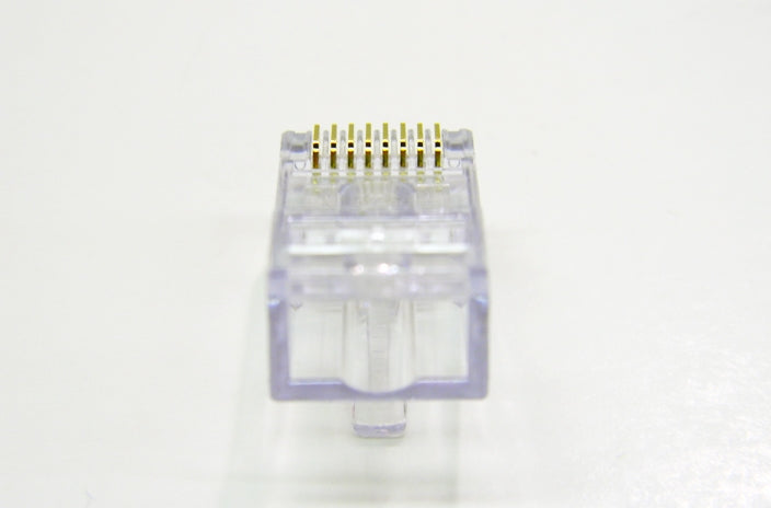 Platinum's 100010B is a EZ-RJ45 (8P8C) Category 6 modular plug for stranded or solid wire. The 100010B connector simplifies twisted pair terminations by allowing the wires to be inserted through the connector and out the front. For larger diameter conductor check out the ezEX-RJ45 Termination System.