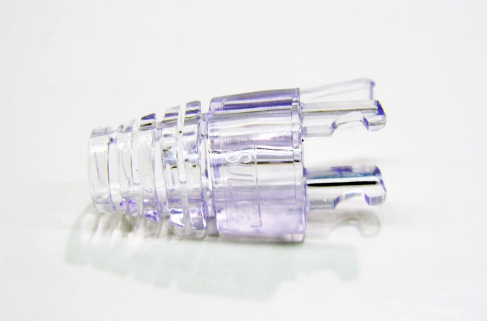 Platinum's 100036 is a clear strain relief boot designed specifically for the EZ-RJ45 category 6 connector. The 100036 unique design allows the strain relief to be crimped with the connector, making it an integral part of the complete assembly.