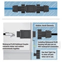 The Platinum Tools 742C is waterproof cable end housing for use with the 741C bulkhead or 740C splice connecotor. The gasketed housing/body screw mating system is secure and rated IP67 waterproof and dustproof. The unit is rated for Cat5e/Cat6 and the cable jacket has an OD range of .216"-.276" (5.5 - 7.0mm).