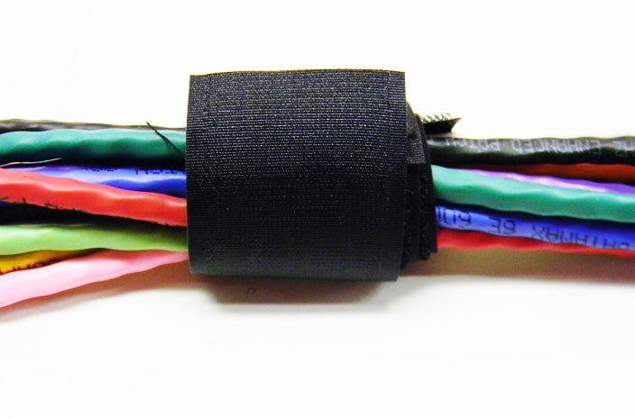 Polygon's 1141-4 5.9 inch (150millimeters) loop and 4.7 inch (120 millimeters) hook black saddle Velcro cable tie strap.The 1141-4 holds a maximum dimension of 2.93 inches (77 millimeters) group of cables and comes in a package of 10.