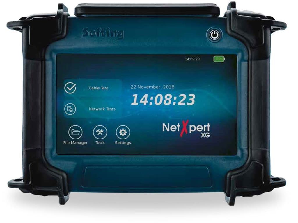 Softing's NetXpert XG 10Gb Gigabit LAN Qualifier with Network Diagnostic Tool provides easy cable testing and Ethernet speed certification. The Softing's NetXpert XG GB provides a complete solution for cable qualification and troubleshooting of active networks, enabling rapid, simple verification and documentation of the capability of cabling links to support Gigabit Ethernet operation compliant with the IEEE 802.3.